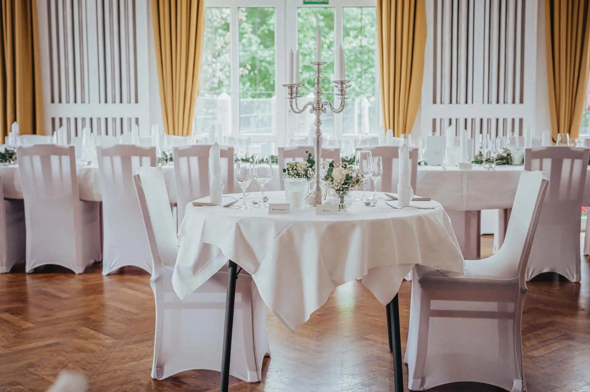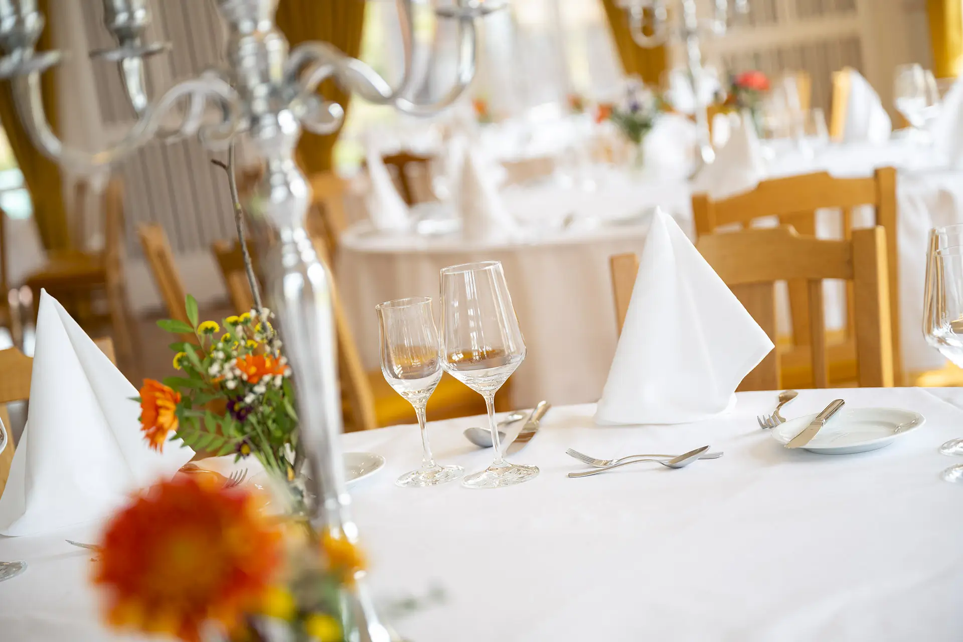 • Feierlich eingedeckter Festsaal für bis zu 80 Gäste