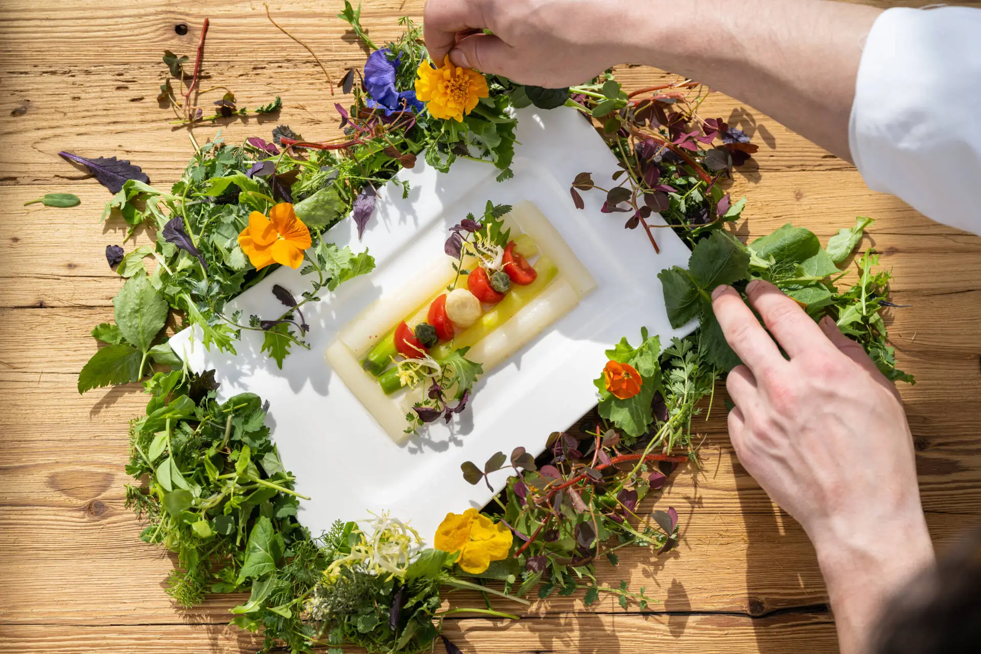 Seit 2014 steht Maximilian Landbrecht gemeinsam mit seinem Vater Arthur in der Restaurantküche. Die beiden verbinden bodenständige bayerische Küche mit feinen Einflüssen aus der Schweiz, Italien und Frankreich. So entstehen abwechslungsreiche Menüs, die klassische Aromen mit modernen Ideen vereinen.